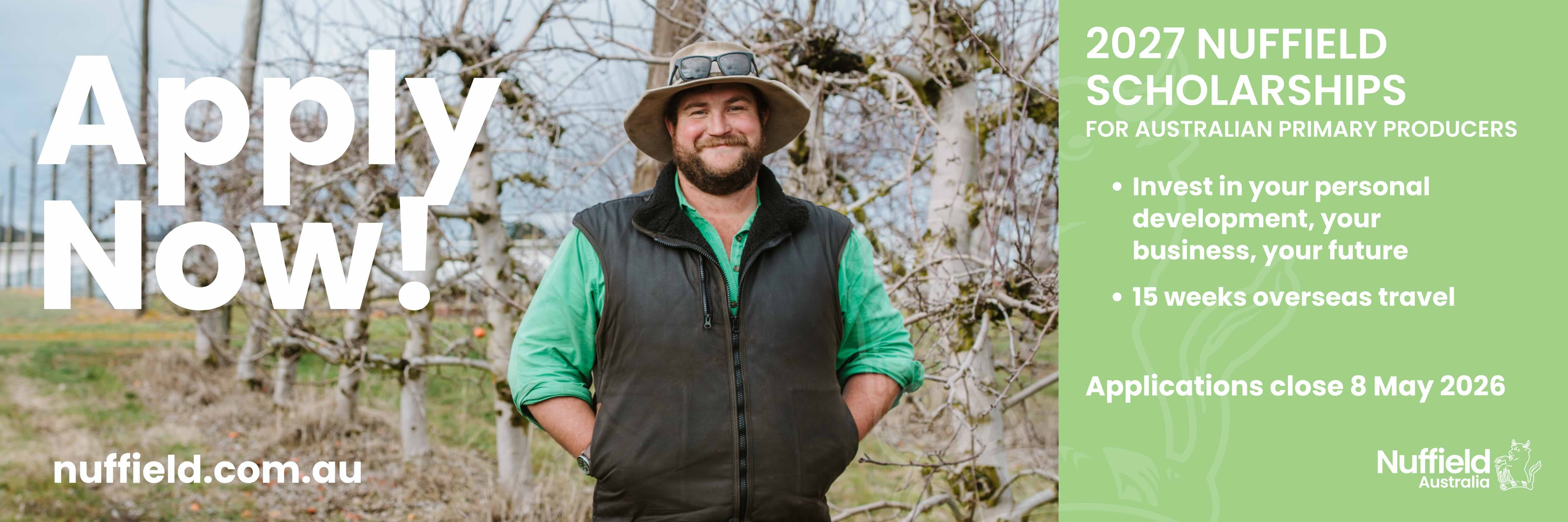 Applications open for 2027 Nuffield ScholarshipsAustralian primary producers are invited to apply for the 2027 Nuffield Scholarships, with applications now open. This year, Hort Innovation will be supporting scholarships in the apple and pear,